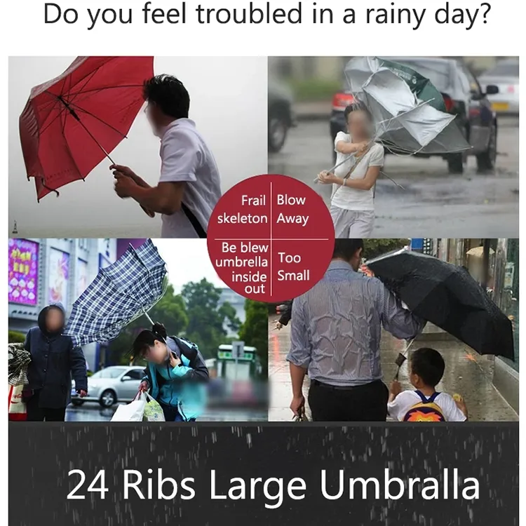 (1) Uitstekende windweerstand: de 24 -botstructuur is de krachtigste garantie voor het omgaan met sterk windweer, niet langer zorgen maken over de schaamte van de paraplu die wordt overgeblazen wanneer hij uitkomt in regenachtig weer.