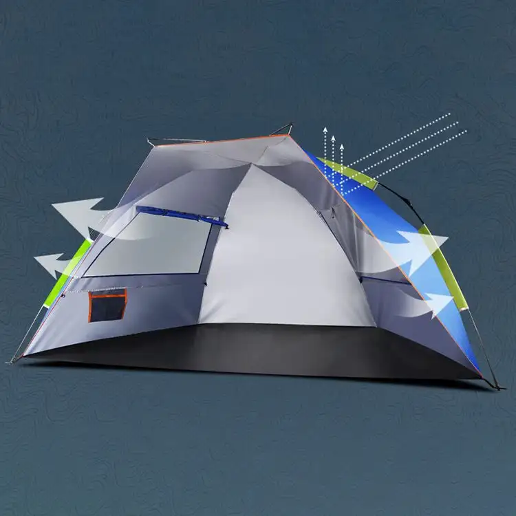 Deze kampeerparasoltent met zandanker is speciaal ontworpen voor zachte grond zoals stranden en woestijnen. De toepassingsscenario's en functionele hoogtepunten zijn als volgt: