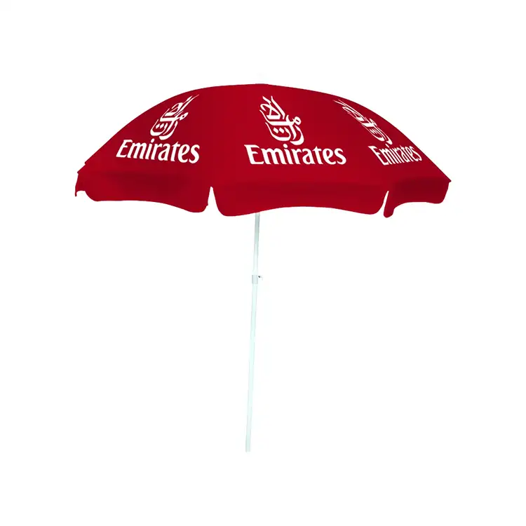 Strandparasol om direct zonlicht op het strand in de grote parasol te voorkomen. Het strandparaplu-ontwerp is gebaseerd op de parasol en de evolutie. Maar nu met de ontwikkeling van een minimalistische stijl en commerciële vrijetijdsindustrie, wordt deze op grote schaal gebruikt voor strandparasols op het strand, mooie vorm, effectief zonweringeffect, goedkope commerciële buitenreclame is meer bevorderlijk voor de promotie van zijn tijd. De parasol is gemakkelijk te verplaatsen, eenvoudige installatie, lage kosten en voordelen voor logo-aankondiging.