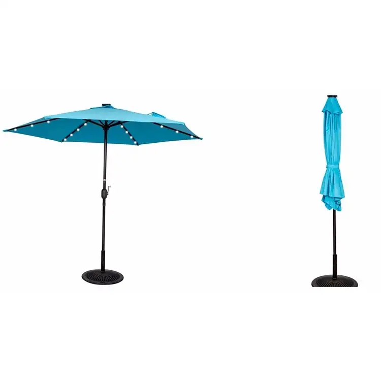 Deze geweldige luxe LED-patioparaplu op zonne-energie is perfect voor picknicks, kamperen, speeltuinen of elke buitenruimte. Het biedt niet alleen voldoende schaduw en houdt je koel op warme zomerdagen, maar de ingebouwde fonkelende lichtjes zorgen ook voor romantische verlichting in de avond. Laat uw familie of vrienden op elk moment genieten. Het zonnepaneel geeft een gloeiend licht dat 9-12 uur meegaat en de LED-lampen zorgen voor ongeveer 15.000 uur gebruik. Deze paraplu beschikt ook over een stevige harsnaaf, drukknopkoppeling en plastic behuizing voor duurzaamheid en gemak.