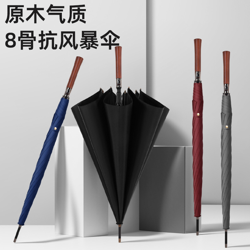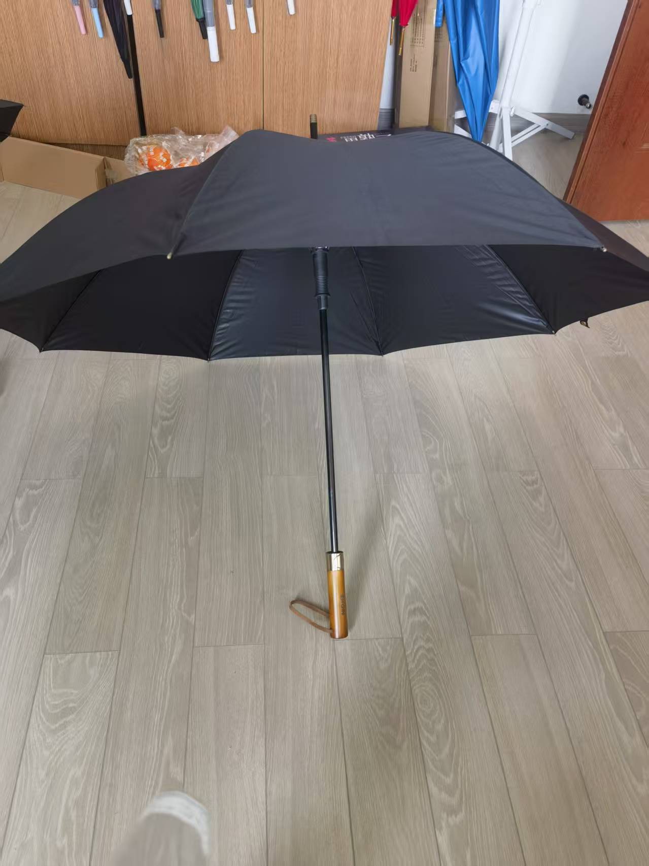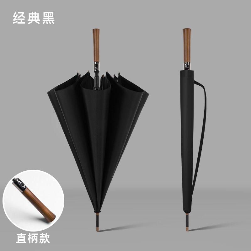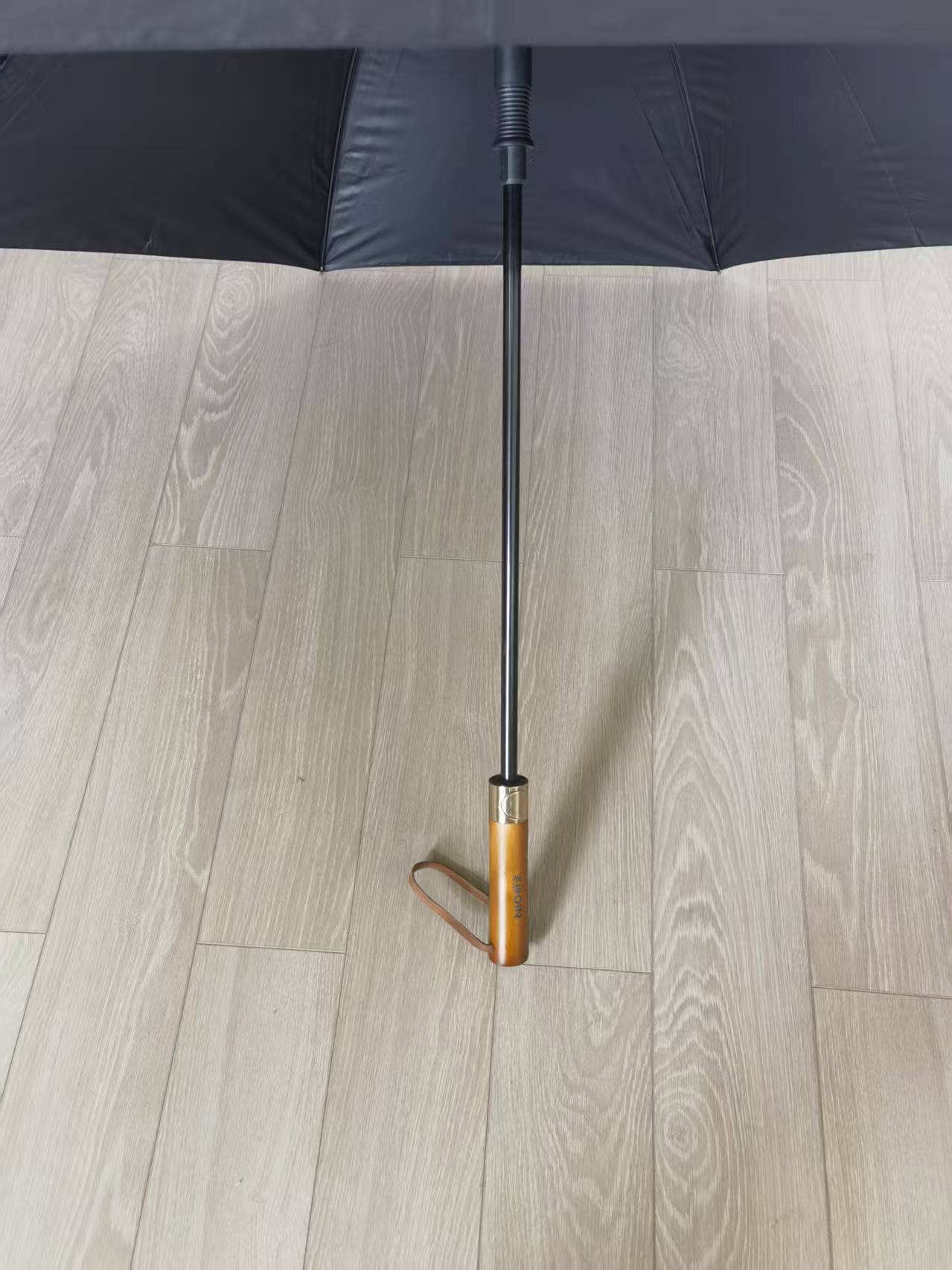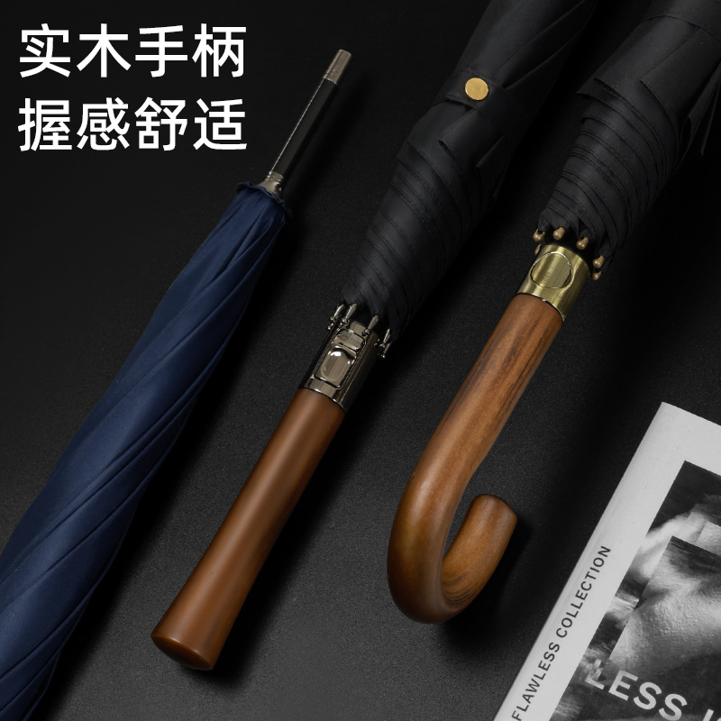 Stijl zeer op elkaar afgestemd: de kleur van het oppervlak van de paraplu, het materiaal van het handvat (massief hout/metaal/leer) en het ontwerp van de verpakking kunnen worden aangepast aan de toon van het merk, waardoor het product perfect kan worden geïntegreerd in het visuele systeem van het merk en het geprefereerde high-end cadeau kan worden.